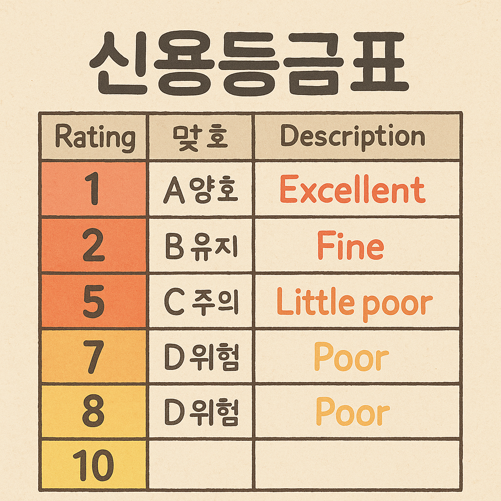 신용등급표는 개인의 금융거래 이력, 채무 상환 능력, 연체 여부 등을 종합적으로 평가하여 수치화한 지표입니다. 흔히 ‘신용점수’라고 부르며, 과거에는 등급체계였으나 현재는 점수제로 운영되고 있습니다. 다만 금융기관이나 신용평가사에서는 여전히 점수를 등급 구간으로 구분해 대출 승인이나 금리 산정에 활용합니다. 즉, 신용등급표는 나의 금융 신뢰도를 한눈에 보여주는 ‘금융 이력표’라고 할 수 있습니다.